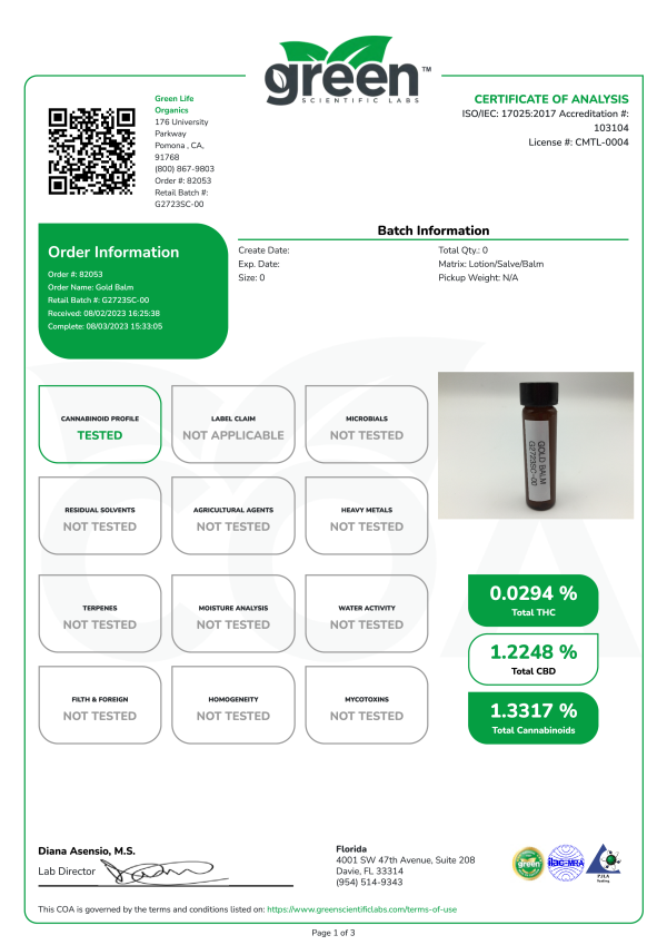 Greenlife Organics Full Spectrum Pure Gold CBD Balm